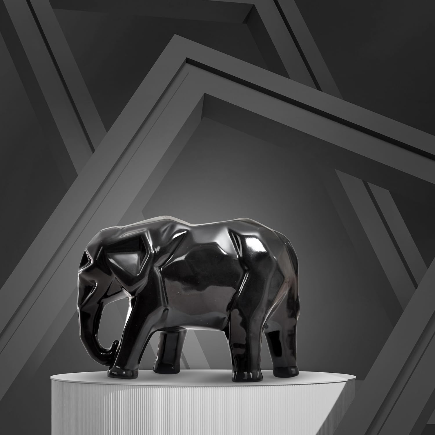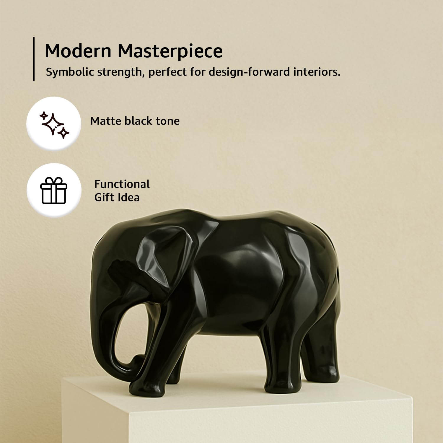 Amazon Basics Bold Geometric Elephant Statue | A Modern Masterpiece for Your Space | Statement Décor with a Contemporary Edge – Pack of 1, Black